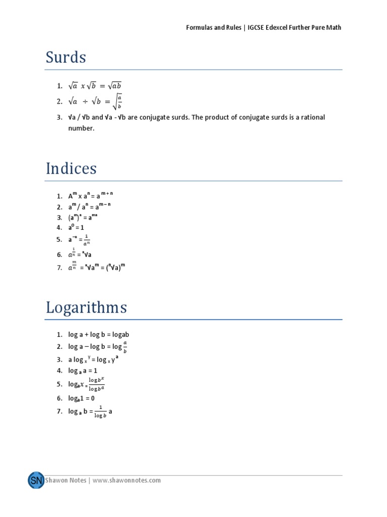 Edexcel Further Maths Formula Booklet